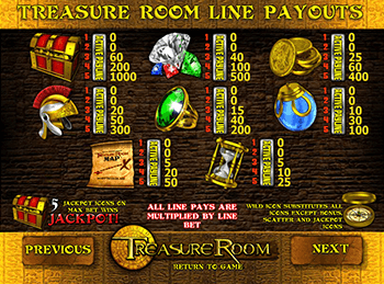 В казино Вулкан всегда большой выбор симуляторов. Рекомендуем обратить внимание на оригинальный слот Treasure Room от компании Betsoft. Вас ждет увлекательный квест в комнате с сокровищами. Постарайтесь найти все припрятанные драгоценности, так как в этом случае ваш приз будет выражен цифрой с шестью нолями. У вас получится, не сомневайтесь!
